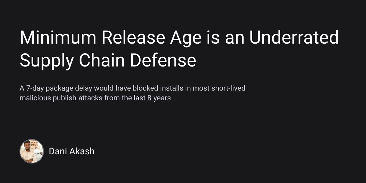 In light of the hack last week to Axios’ npm package, some are suggesting that using npm’s new minimum-release-age feature can be helpful E.g.
