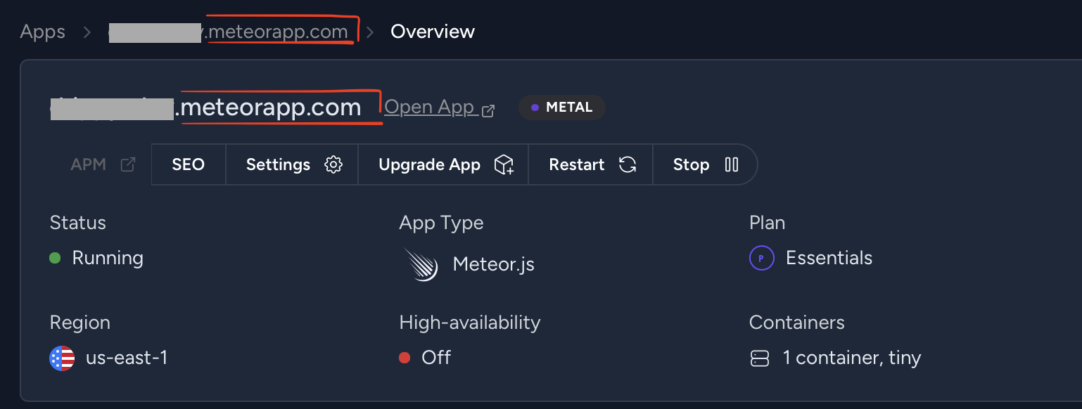 Galaxy UI shows deployments are at example.meteorapp.com but this recently changed and the UI is not showing the new URLs for apps. Trying to access these URLs in the browser is no longer working.