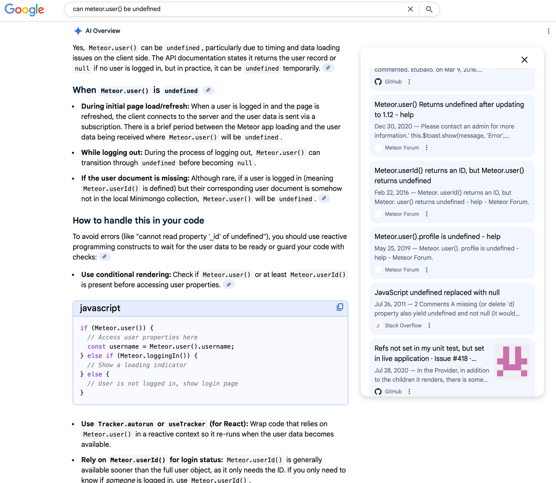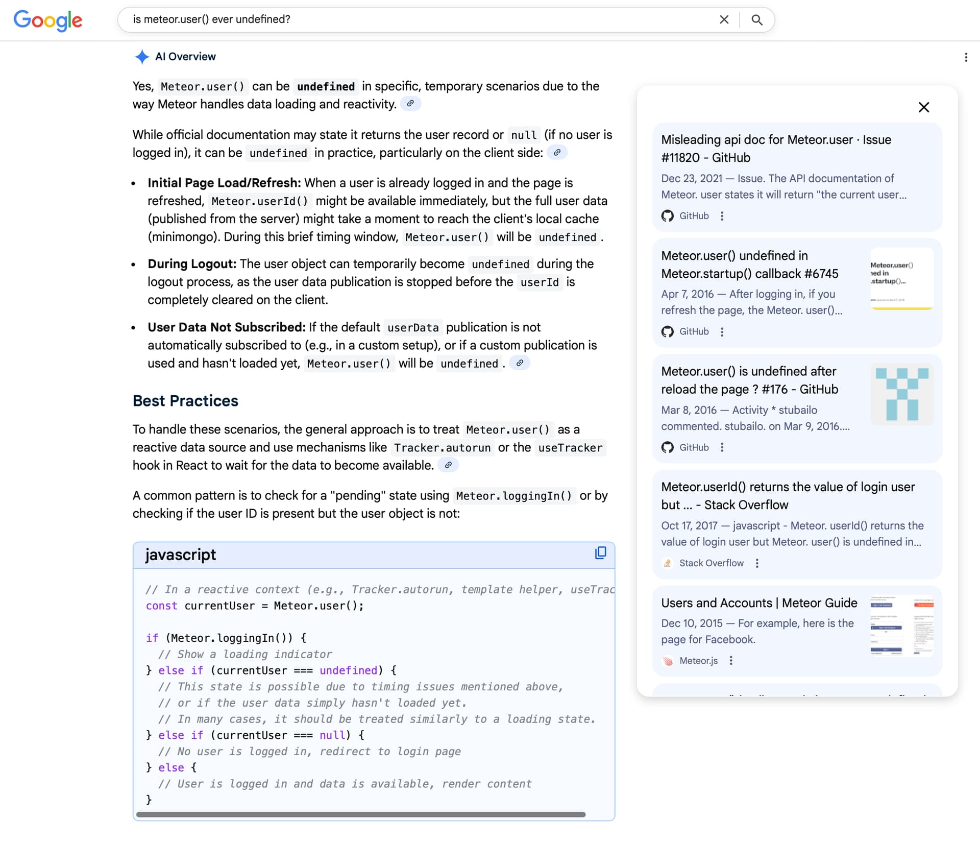 It is important that we make this clear, because checks like if (Meteor.user() !== null) will definitely be erroneous. I’ve opened a pull request to update the docs: